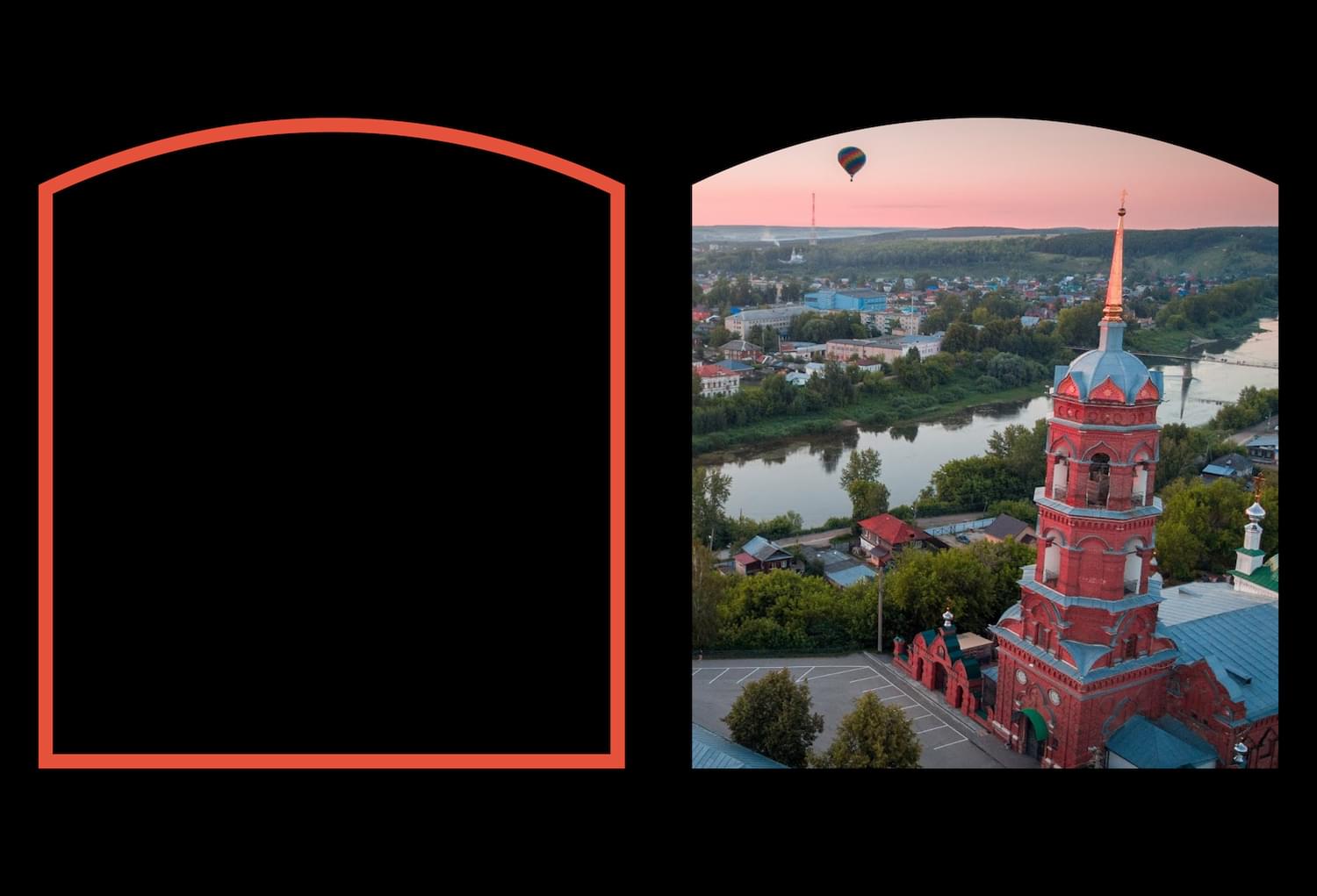 Кунгурская историческая архитектура изобилует арочными сводами. Мы решили использовать эту форму для имиджевых фото фреймов.